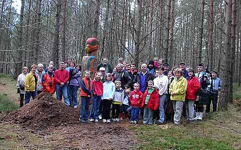 The finished Bennachie pole and participants (click the image to see a bigger version)